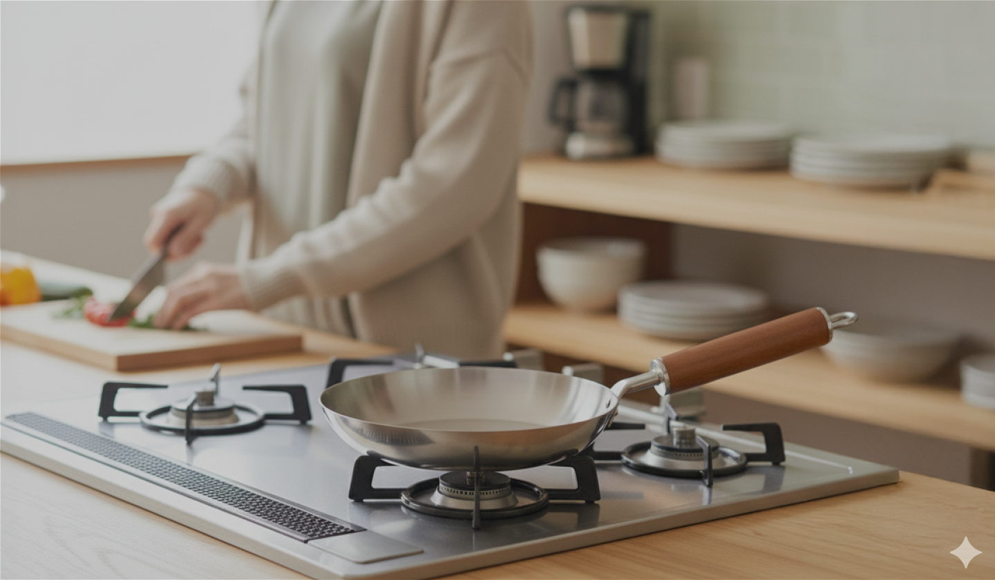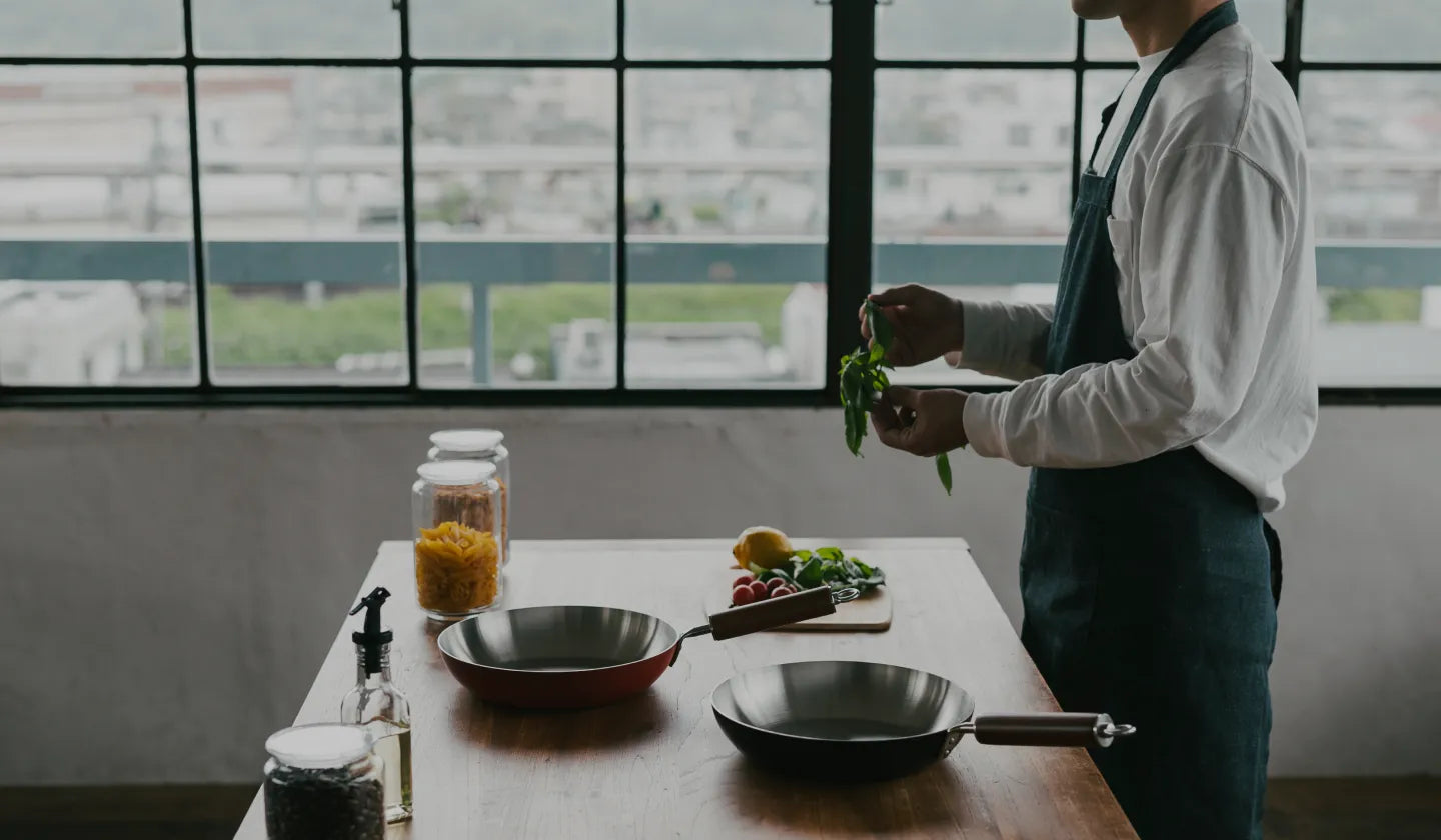 思い出を重ねるキッチンで長く使っていただきたいという思いから、丈夫で手入れがしやすいありのままのフライパンを作りました。自慢の保温力、使いやすさを体感してください