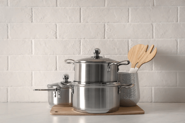 ステンレスは保温性が高く錆びにくい金属です。保温性は高い一方で、温まるまでには少し時間がかかります。そこで多くのステンレスフライパンは、ステンレスの間に温まるのが早いと言われる軽いアルミを挟んだ多層鋼を使用しています。3層だけでなく5層や7層もあったりします。