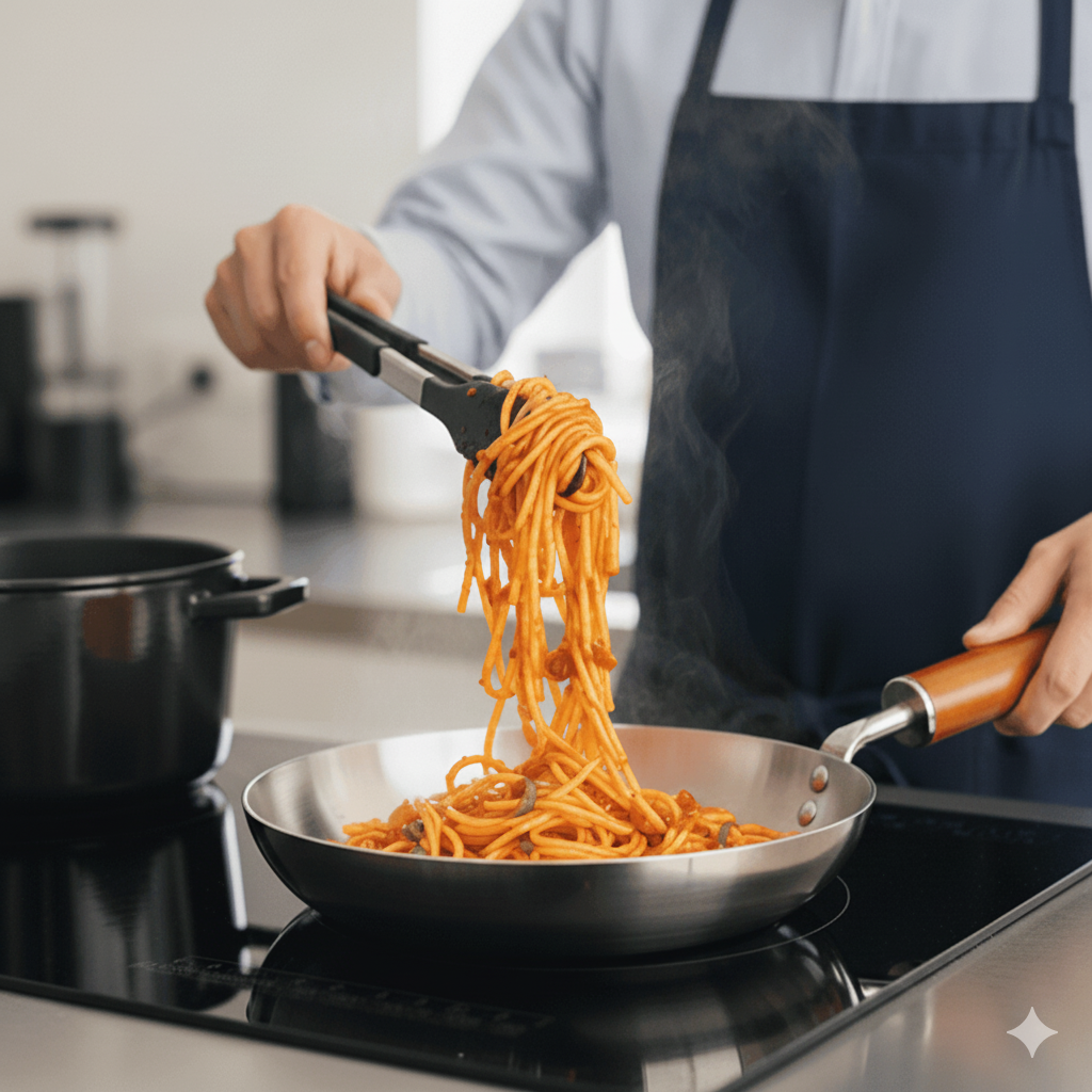 「ステンレスフライパンは重さが気になる…」という方もいるかもしれませんが、私達の製品はアルミクラッド3層構造を採用しており、有名メーカーのステンレスフライパンと比較して約15%もの軽量化にも成功しています。
